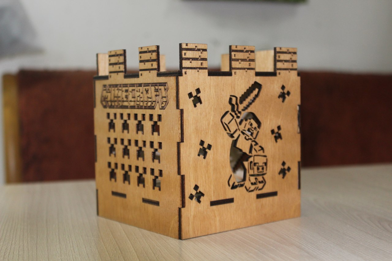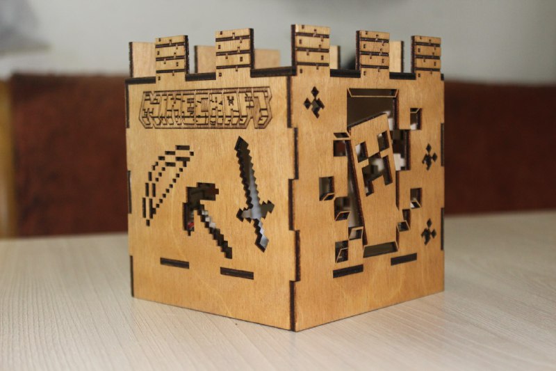 Ночник в стиле Minecraft из фанеры - это прекрасный выбор для поклонников популярной игры. Ночник изготовлен из высококачественной фанеры и имеет светодиодную подсветку, которая создает уютную атмосферу в комнате. Ночник работает от батареек, что позволяет легко перемещать его по комнате.